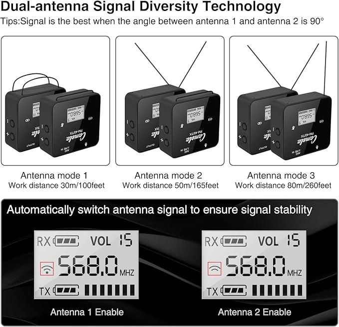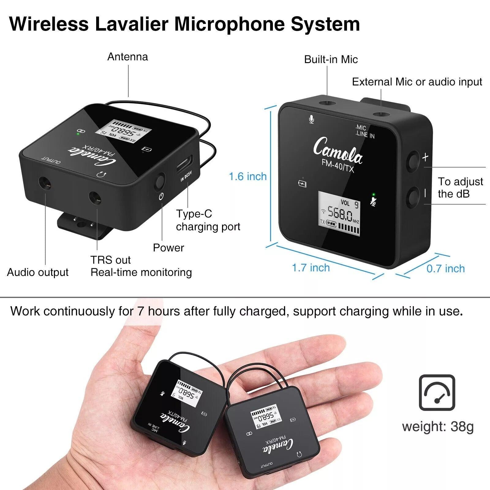 CAMOLA FM40 Wireless Radio Receiver Transmitter UHF Dual Antenna Microphone System Clip Lavalier Lapel