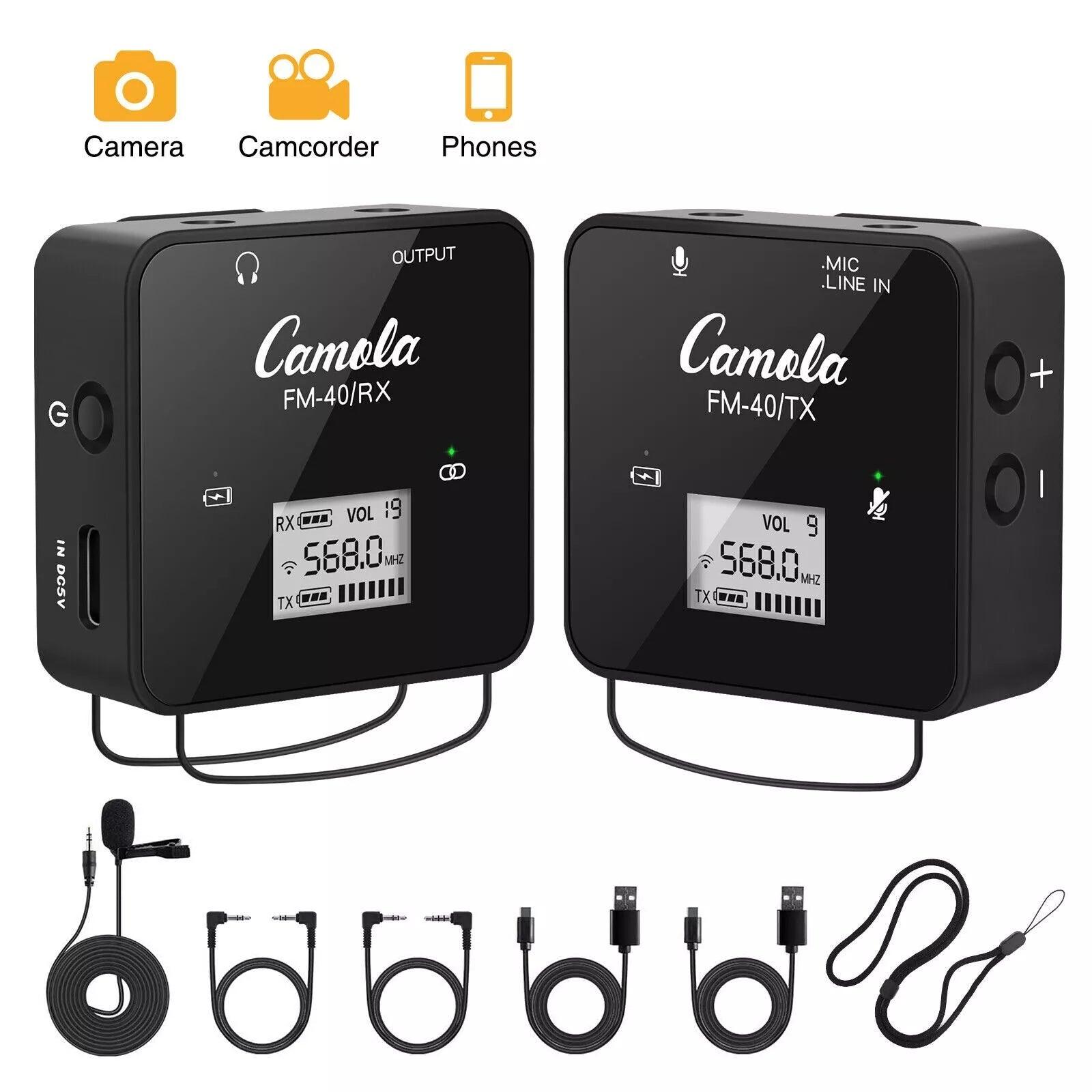 The High-quality CAMOLA FM40 Mini 2.4G UHF Wireless Lavalier Microphone System Kit with Transmitter, Receiver & Built-in Li-ion Battery is good for your Cameras or Smart Phone.