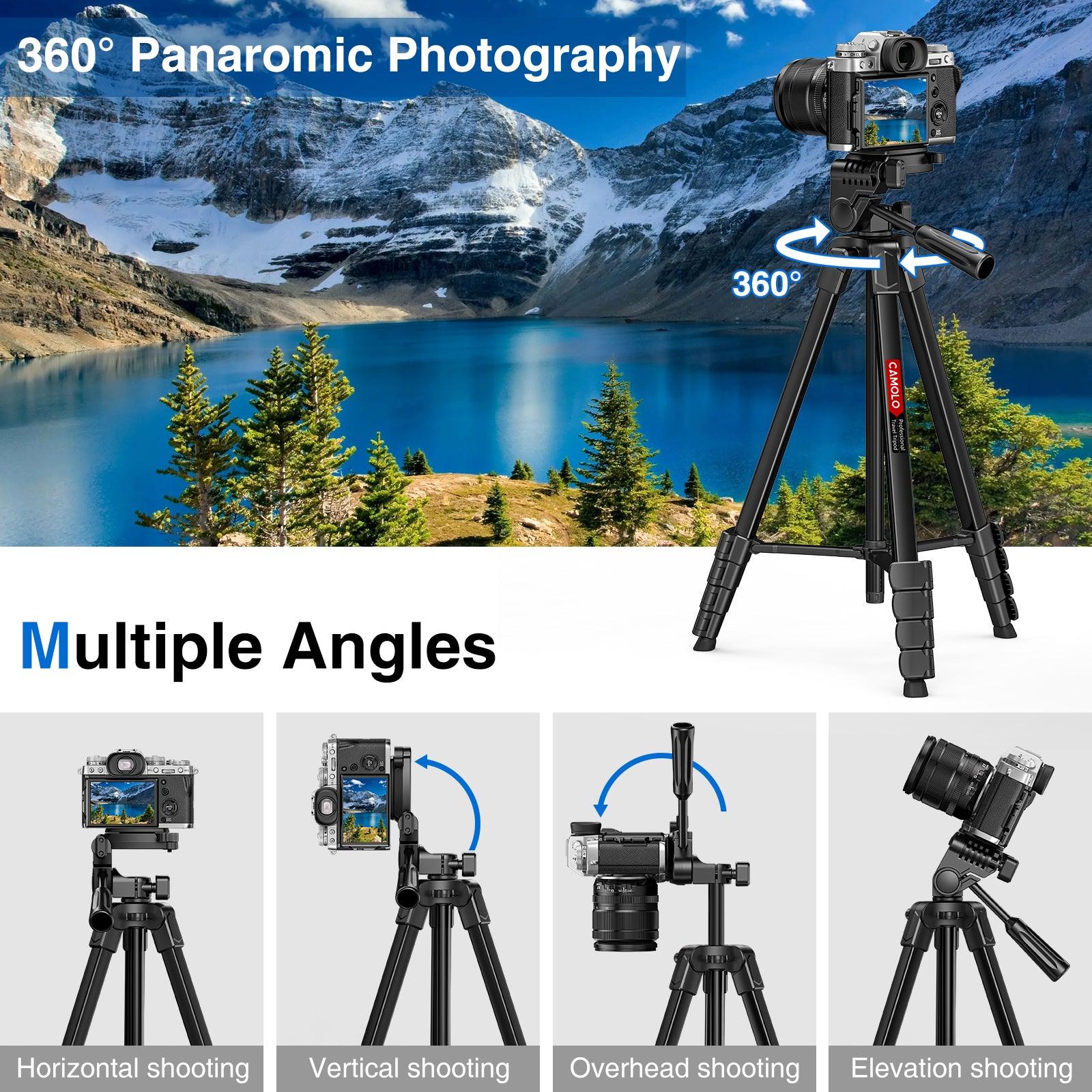 The head mount has free adjustment for pan,tilt and rotation, to realize all photo and video needs such as overhead, low-angle and macro shooting and panoramic photography