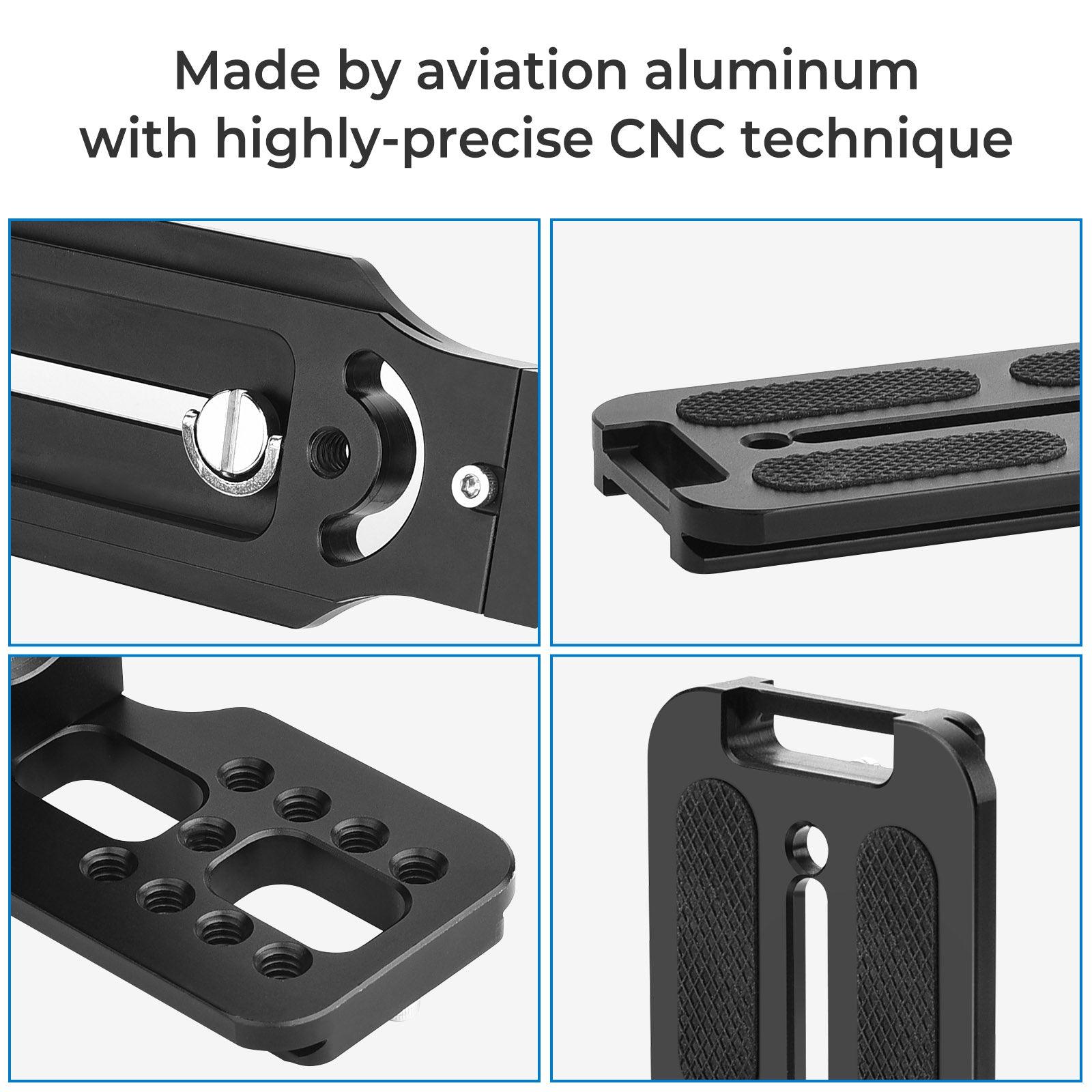 Our compact travel vertical plate made by aviation aluminum with highly-precise CNC technique, the bracket features light weight,high strength and good durability, which will absolutely worth the money and can work with a super long life -