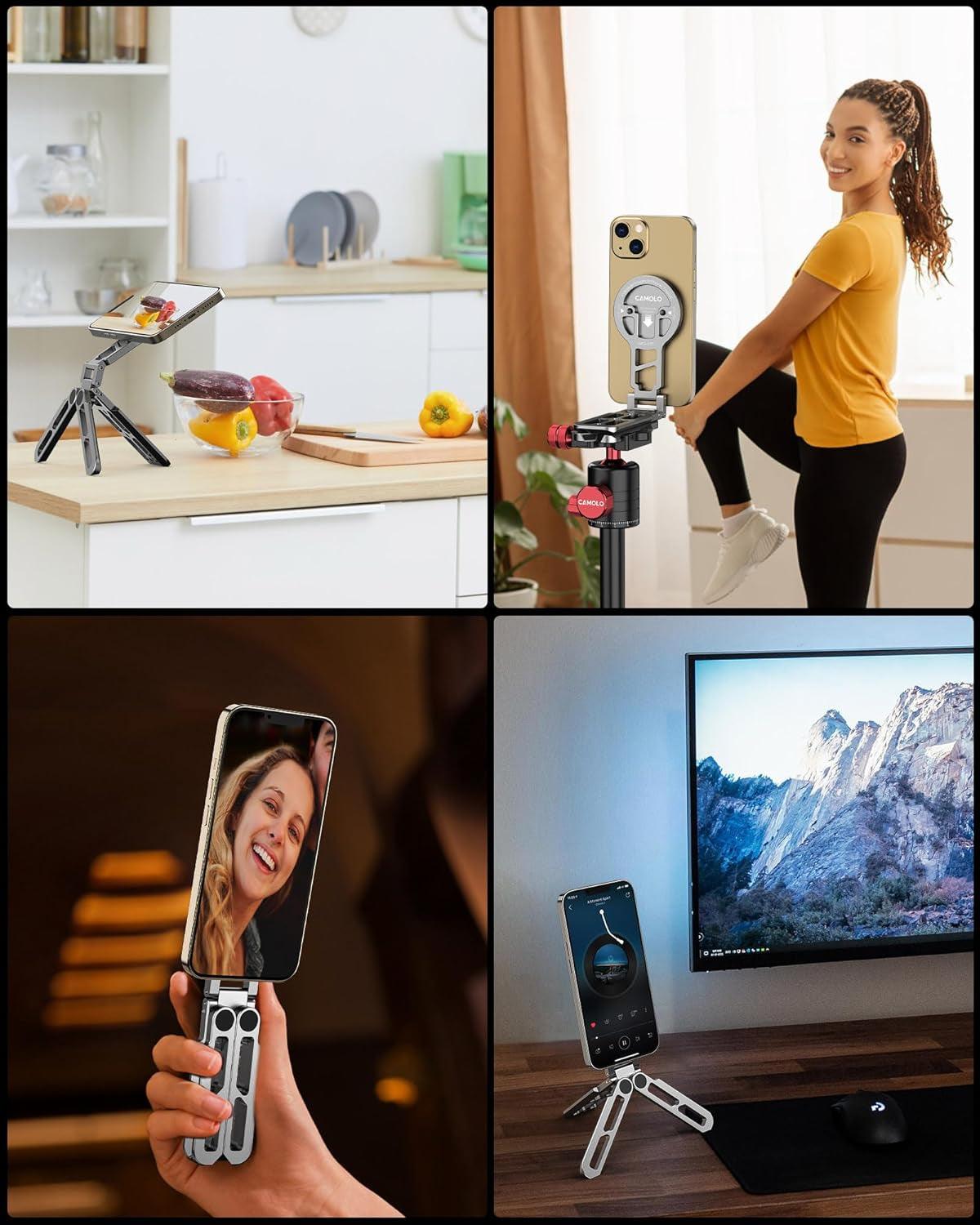 Maximize your phone's potential with the CAMOLO Magnetic Pocket Phone Tripod. This compact and travel-friendly tripod is compatible with Magsafe for iPhone 15-12 Plus Pro Max series. It features a foldable design and a magnetic pocket for easy storage. Upgrade your photography game now!