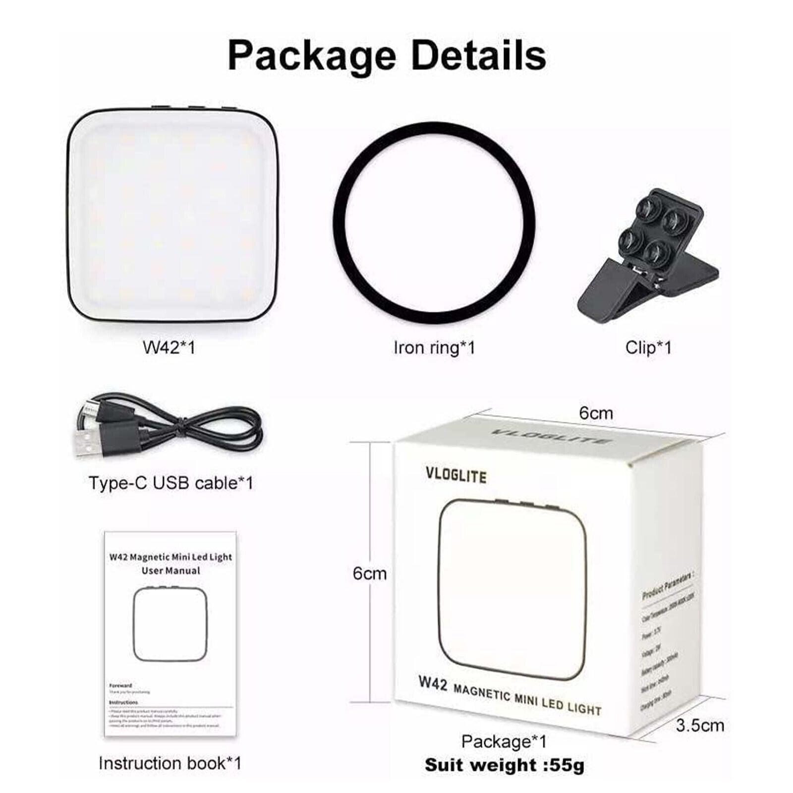 【Compact & Portable】 Pocket sized and extremely compact, it will not take much space in your bag. W42 mini selfie light is lightweight as 33g. Take it with you anywhere you go and record all happy moments in your life! It will come in handy whenever you need.