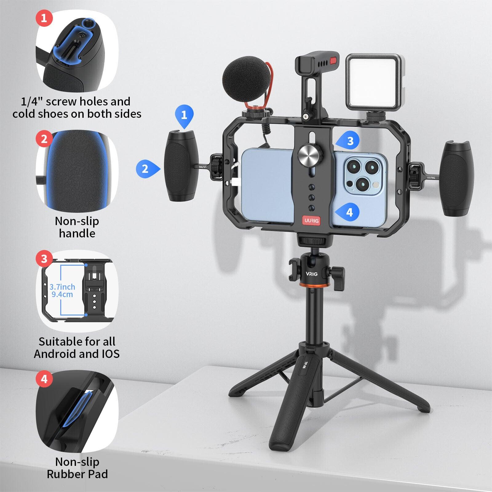 Cell Phone Stabilizer for Video Recording -Camera Stabilizer Rig +Phone Mount - iPhone Filming Accessories - Phone Video Stabilizer Handheld KIT