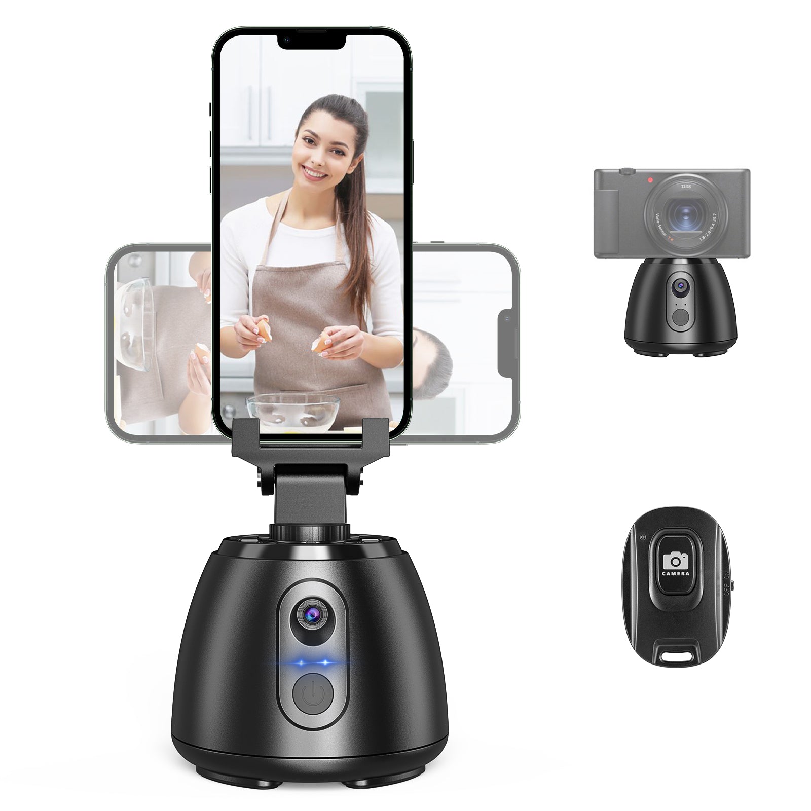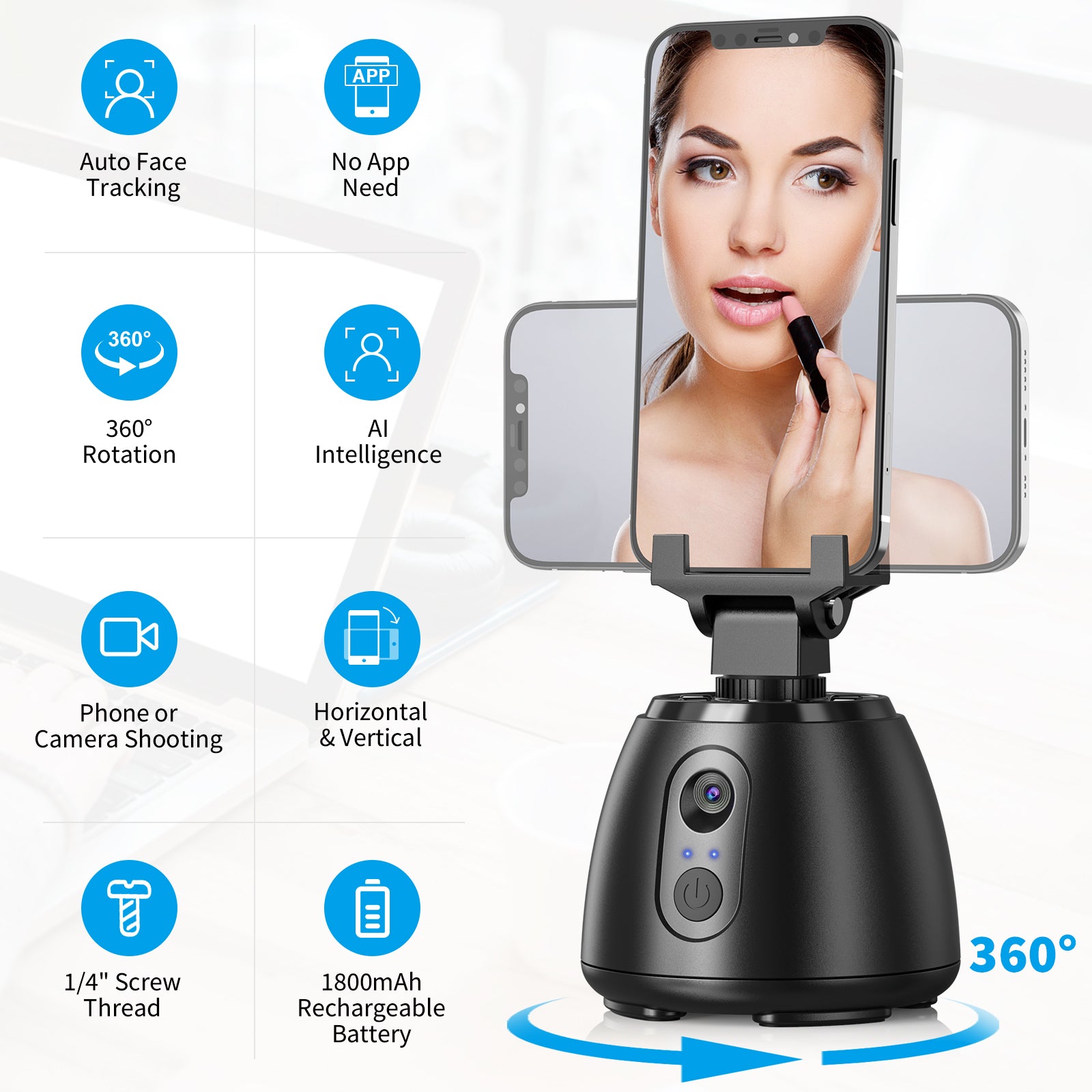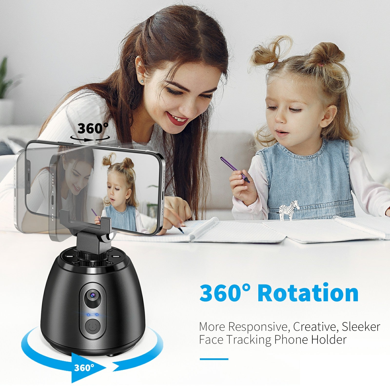 With 360° rotation, the automatic tracking phone holder allows you to switch from portrait or landscape while taking a picture