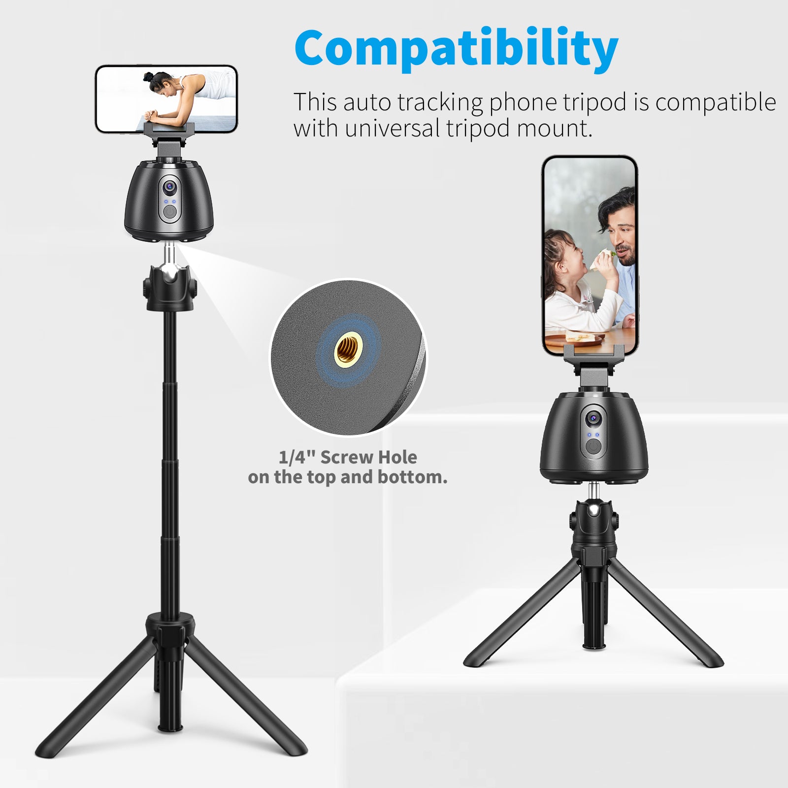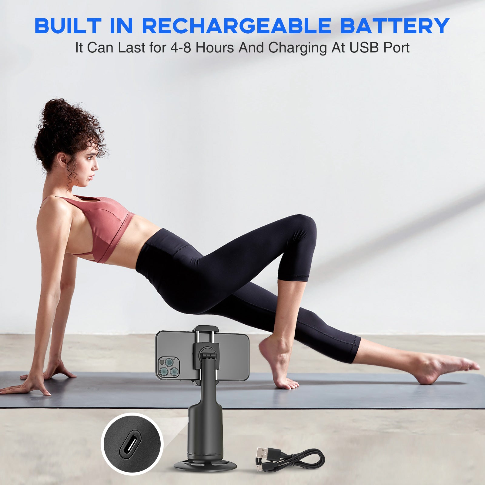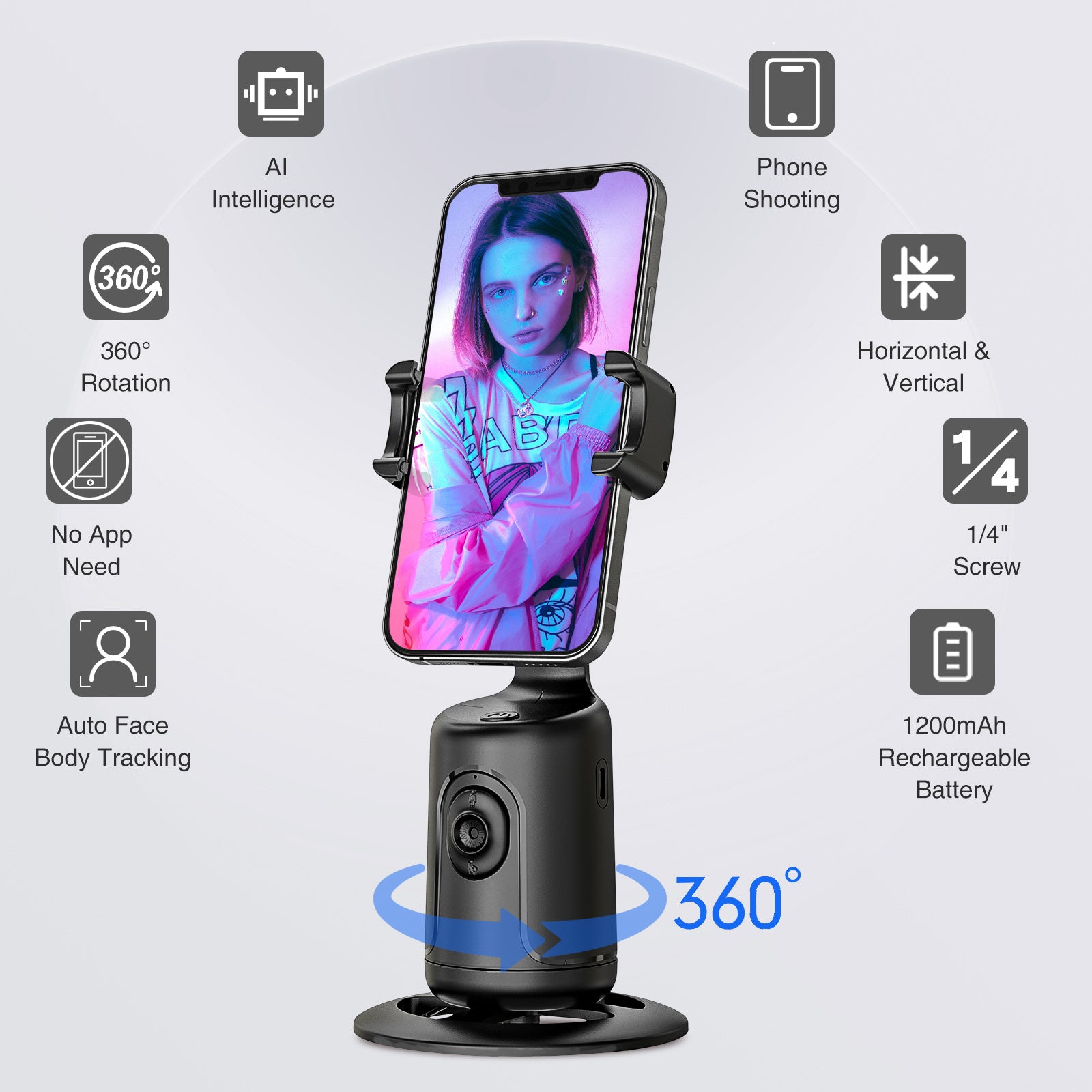 With 360° rotation, the automatic tracking phone holder allows you to switch from portrait or landscape while taking a picture