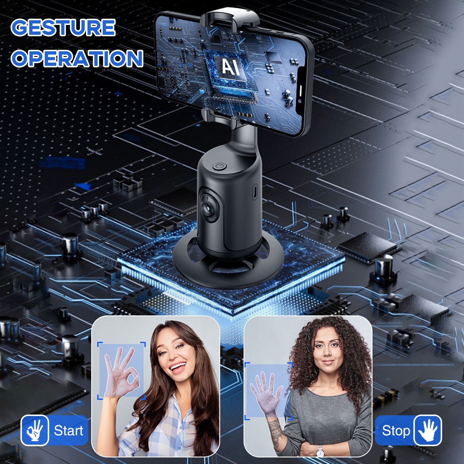 This auto tracking camera stand adopts an artificial intelligence computing system, which can automatically recognize and track your face or body, and automatically rotate stably as you move