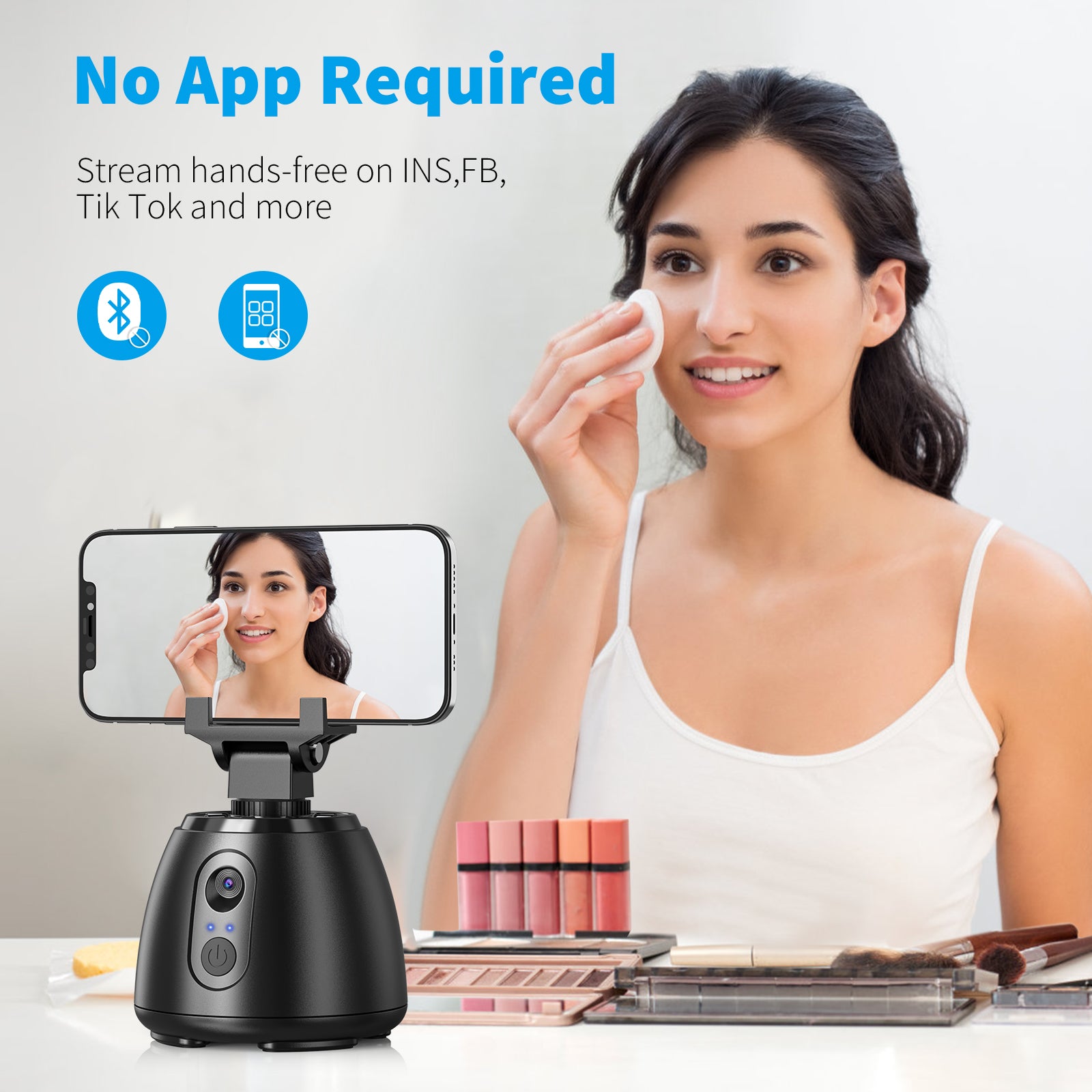 With a built-in camera, the face-tracking phone stand can intelligently track you without you having to download any apps or connect via Bluetooth