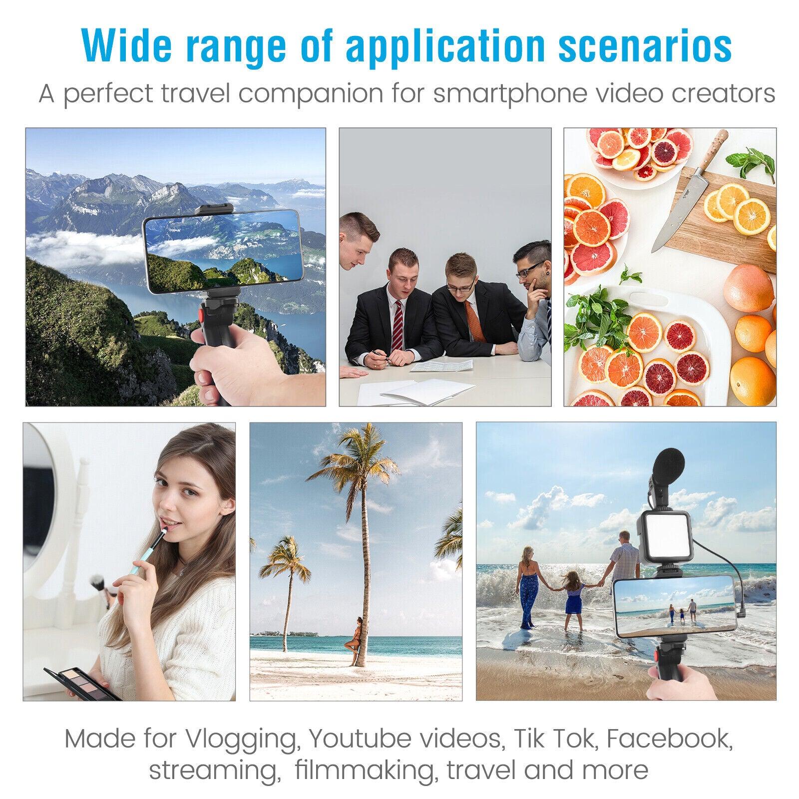 Phone Vlog Video Kit with Table Tripod+Phone Holder+Cold Shoe+Microphone+LED Video Light+Remote Shutter